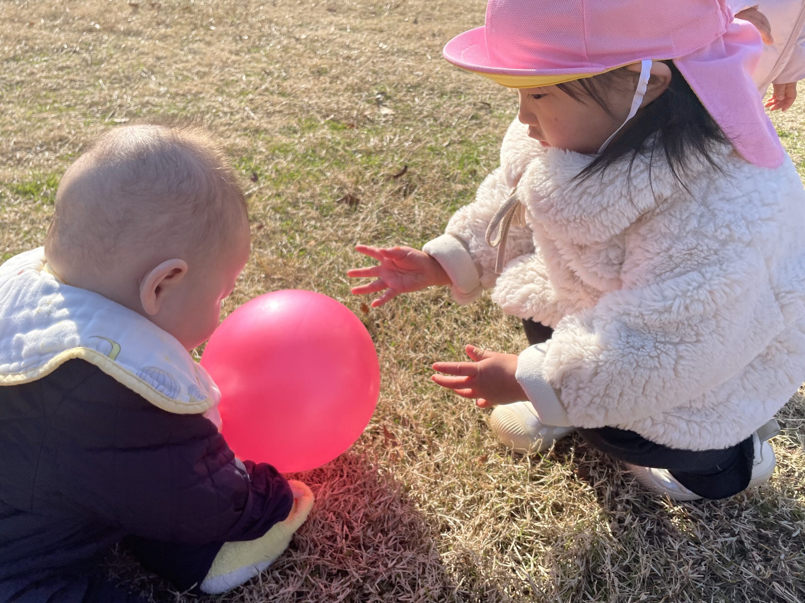 広場でのびのびとすごす姿が