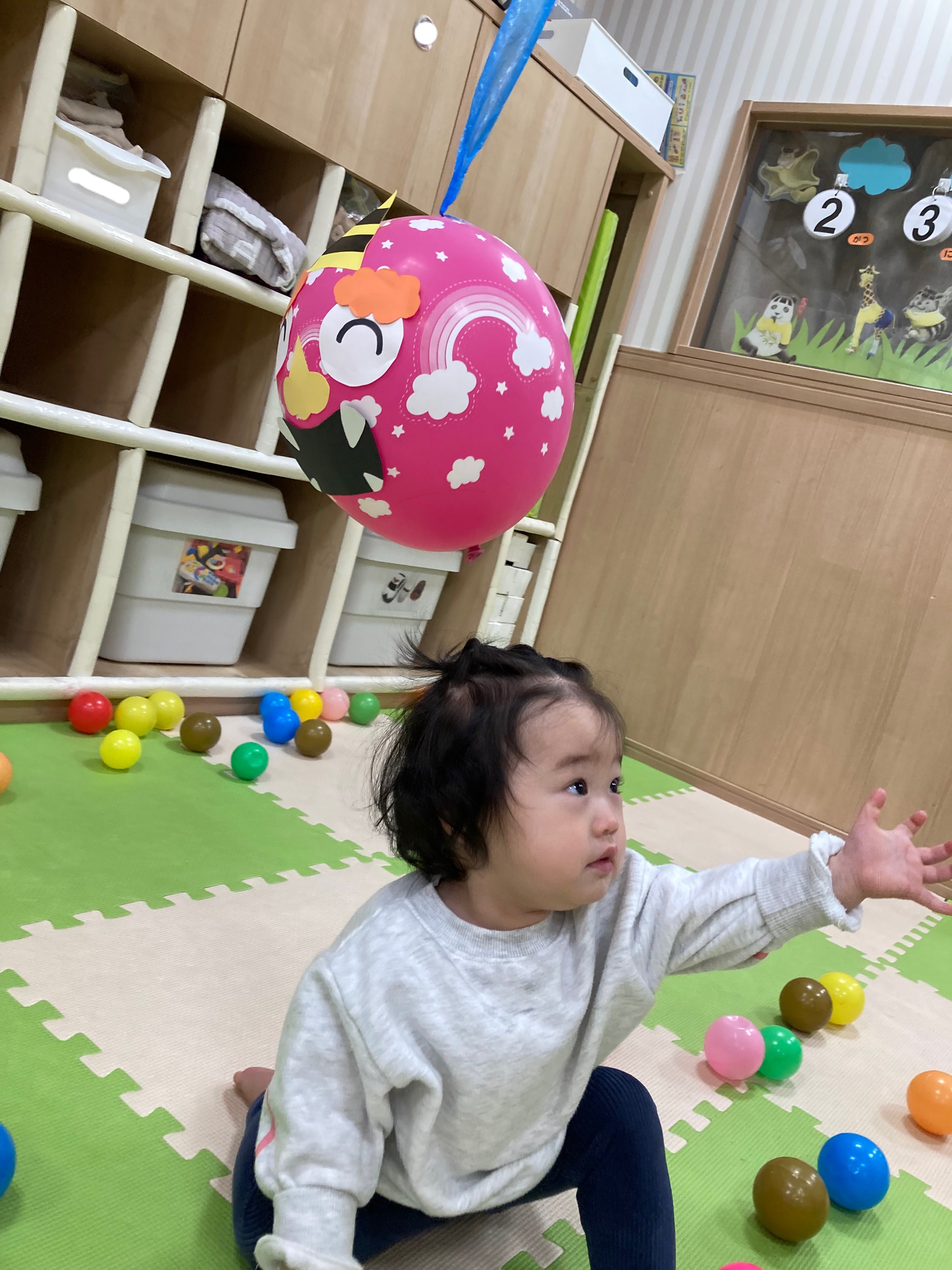 風船を鬼に見立てたり、保育士の鬼の登場に少しびっくりして涙が出てしまうお友だちもいましたが、保育士やお友だちと一緒に豆を投げるうちに勇気を出して参加する姿が見られました。